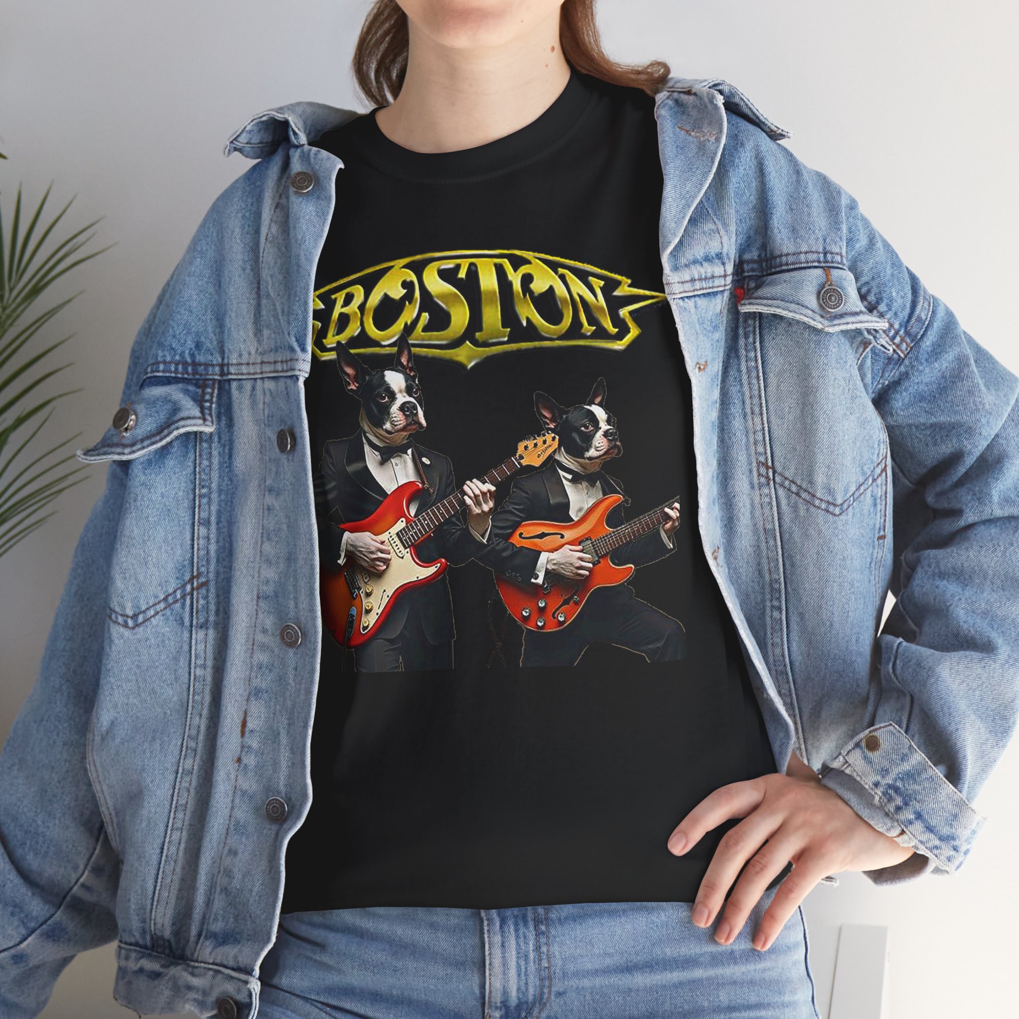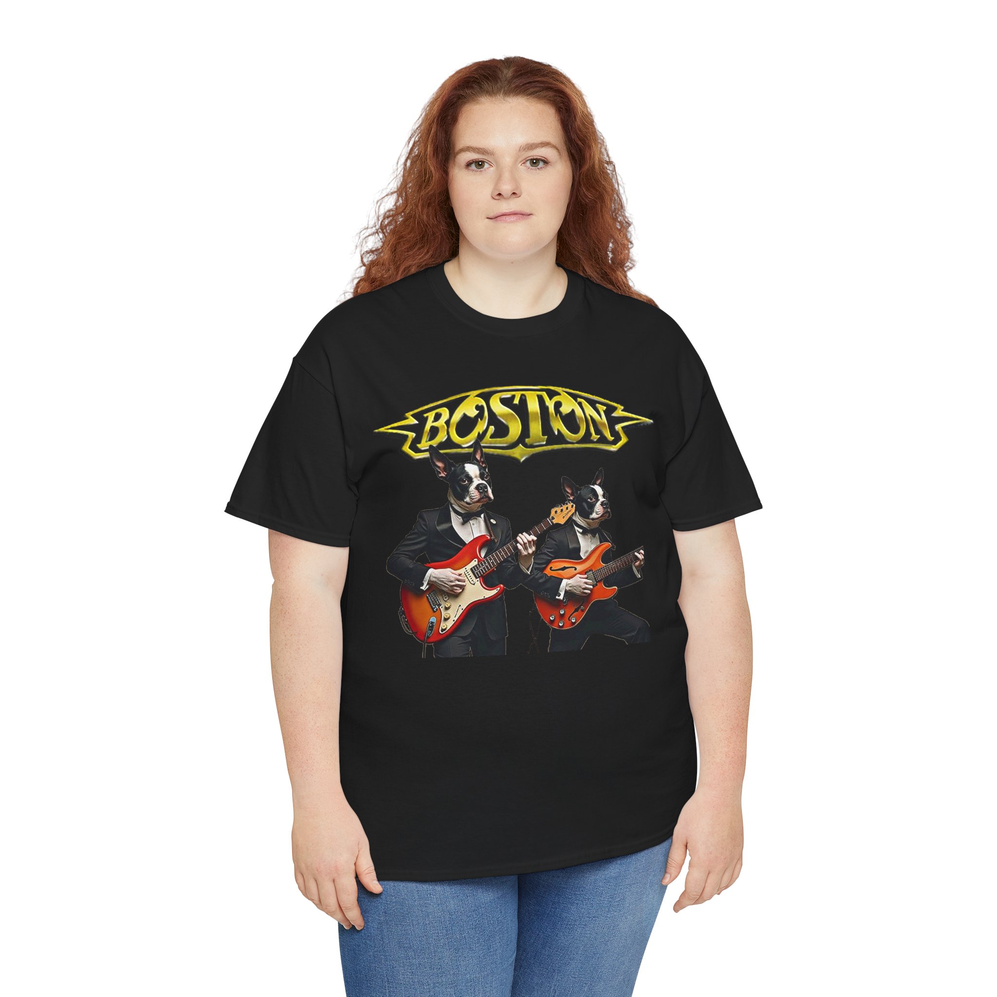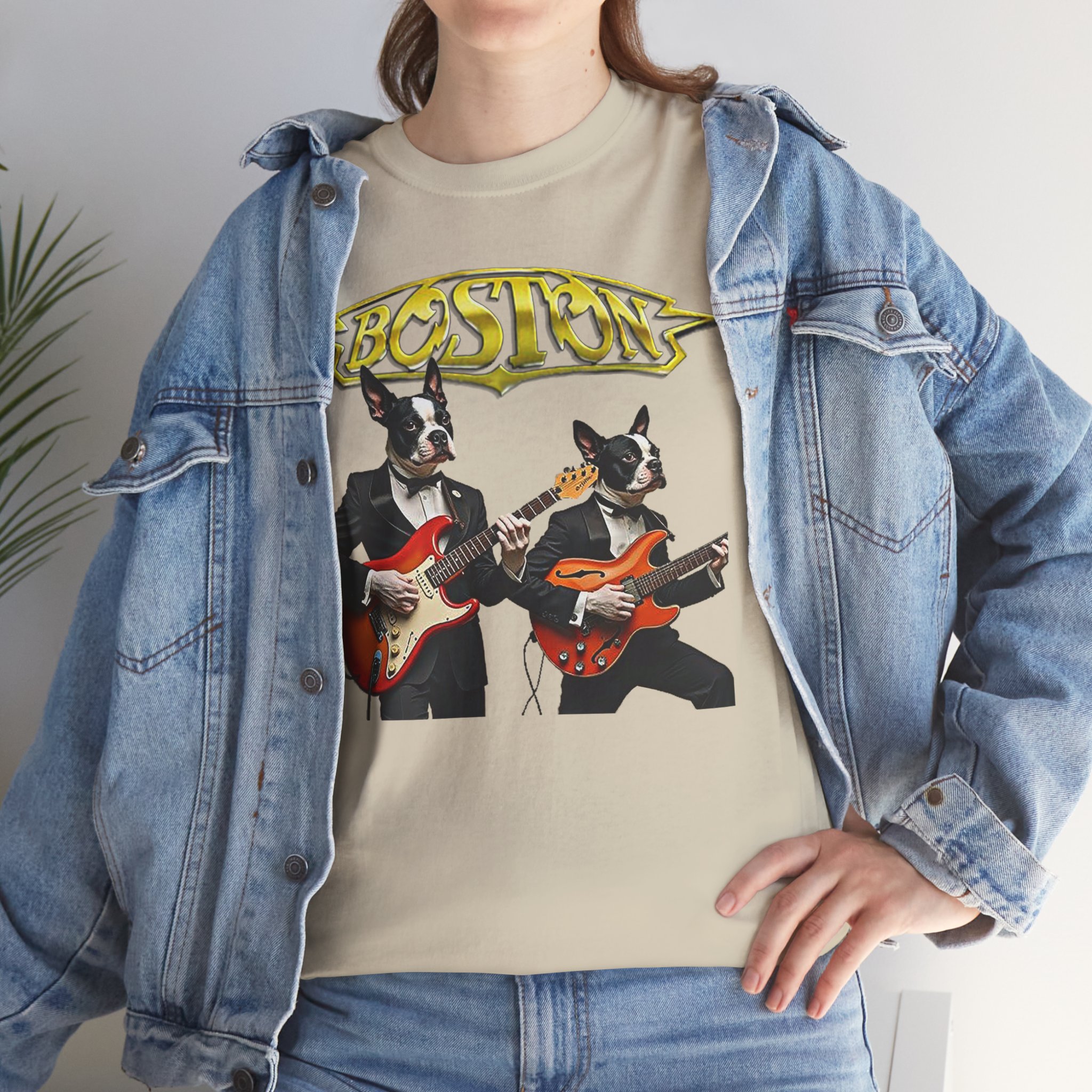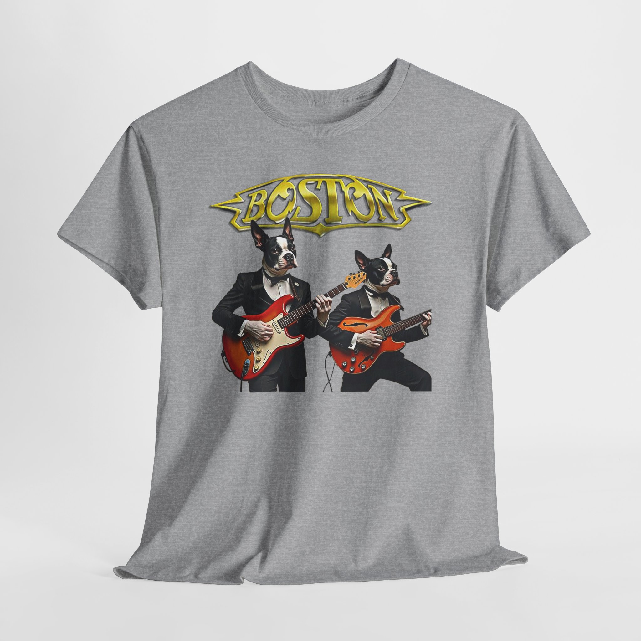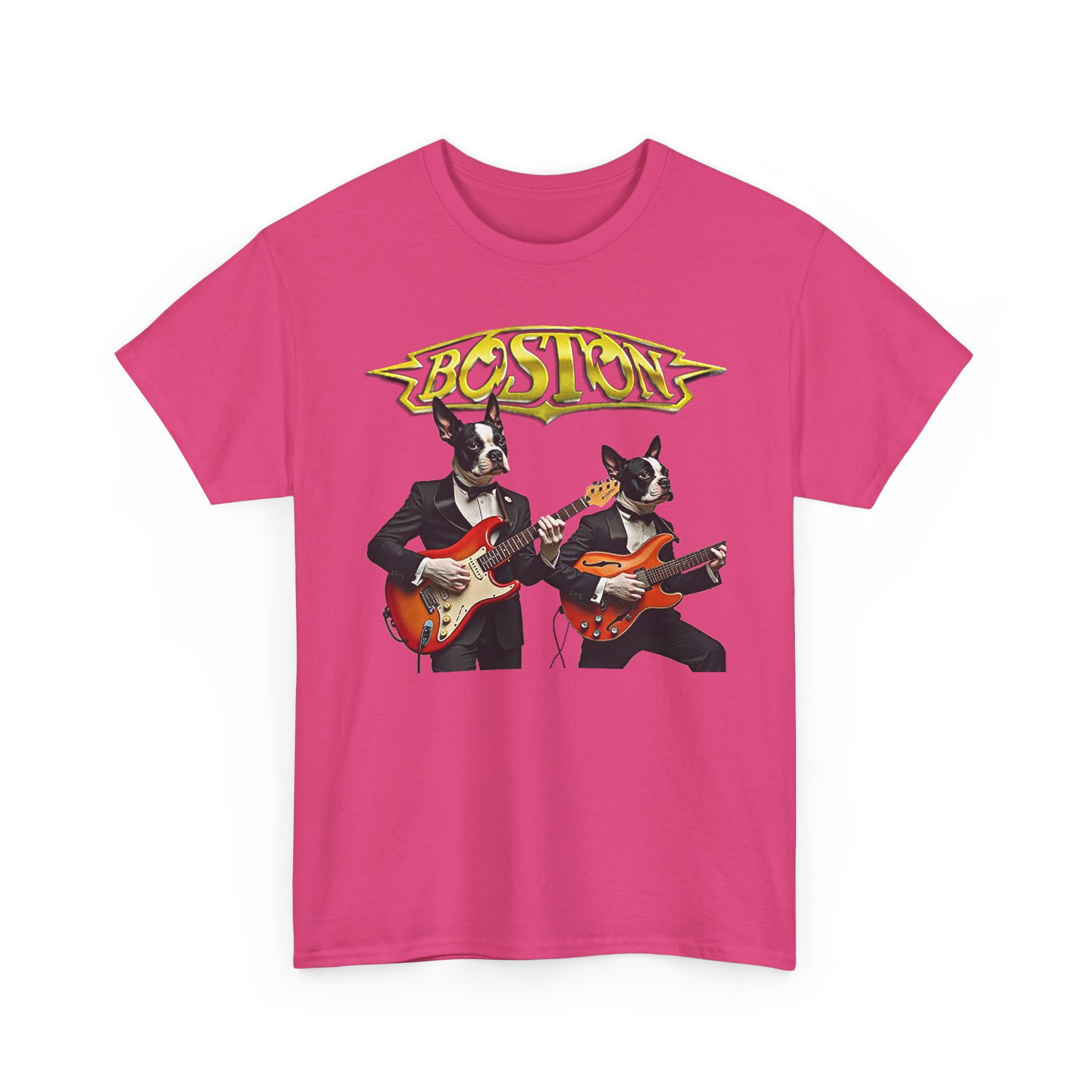 This relaxed, classic-fit tee brings playful vintage rock energy to everyday wear. Two tuxedo-clad Boston terriers stand mid-riff, guitars slung low, captured in crisp, detailed print work that keeps the image bright wash after wash. The medium-weight cotton drapes comfortably — sturdy enough for repeated wear, soft enough for long rehearsals, late-night drives, or lazy weekends. Wear it with faded jeans and a beat-up amp for an effortlessly nostalgic look that speaks to dog-loving music fans and anyone who remembers vinyl sleeves and late-night radio shows.