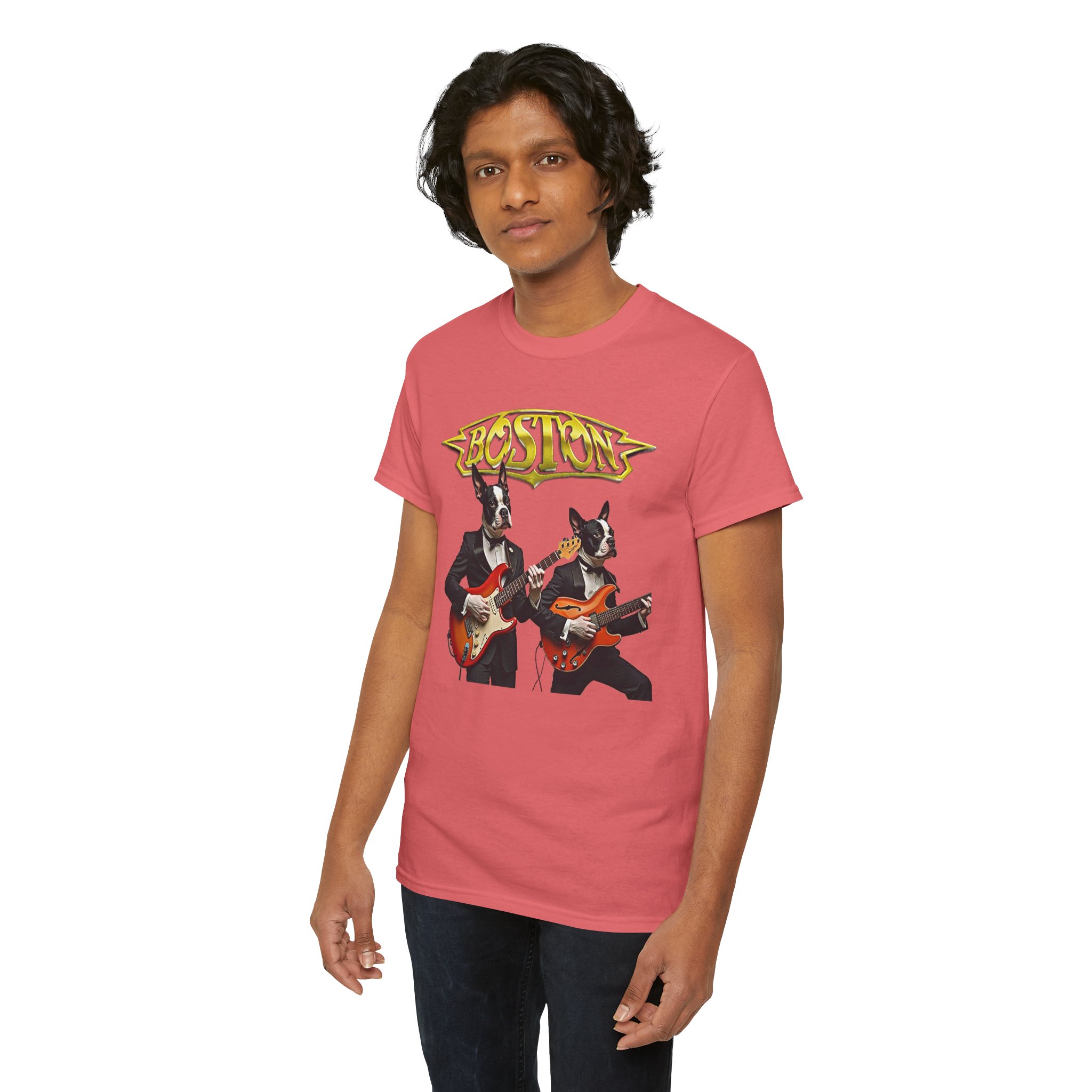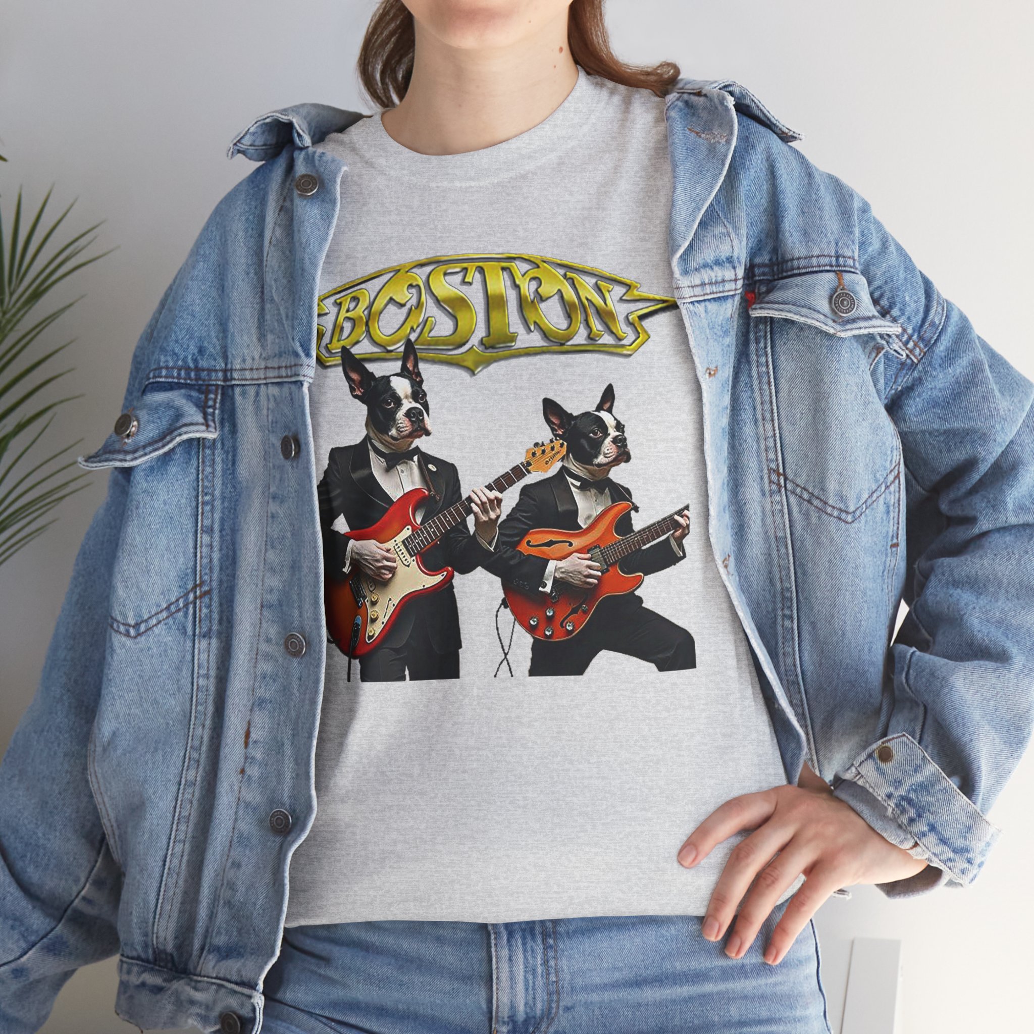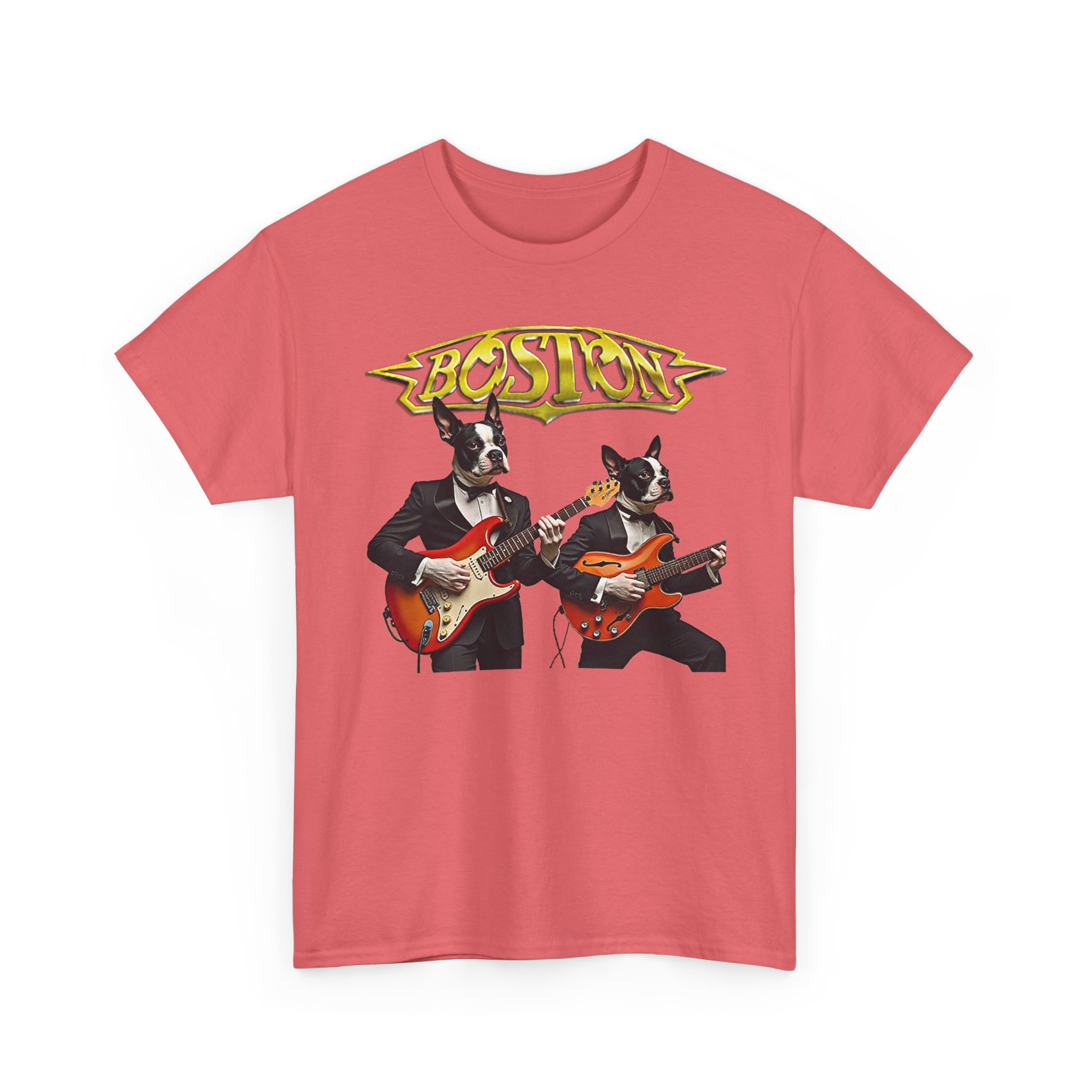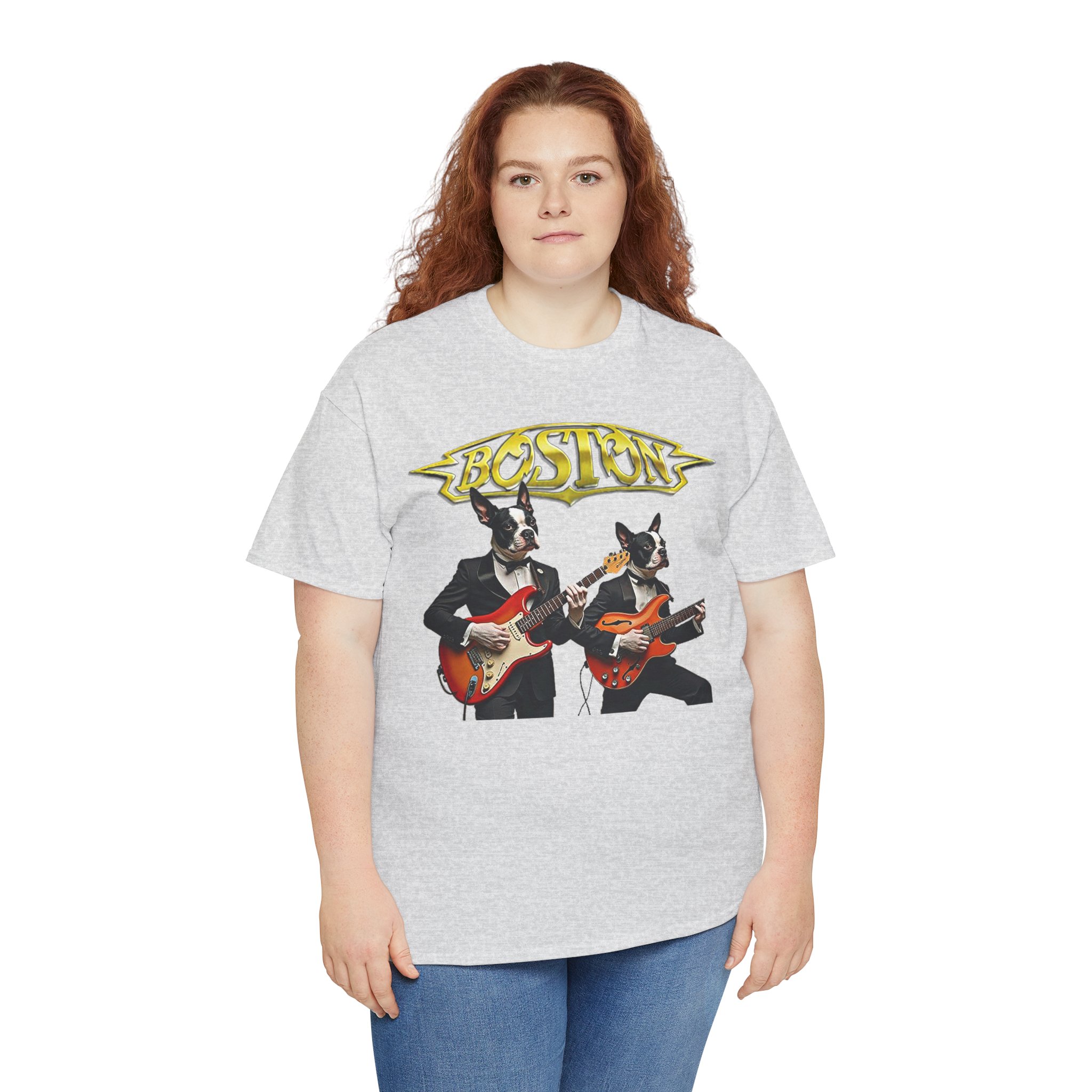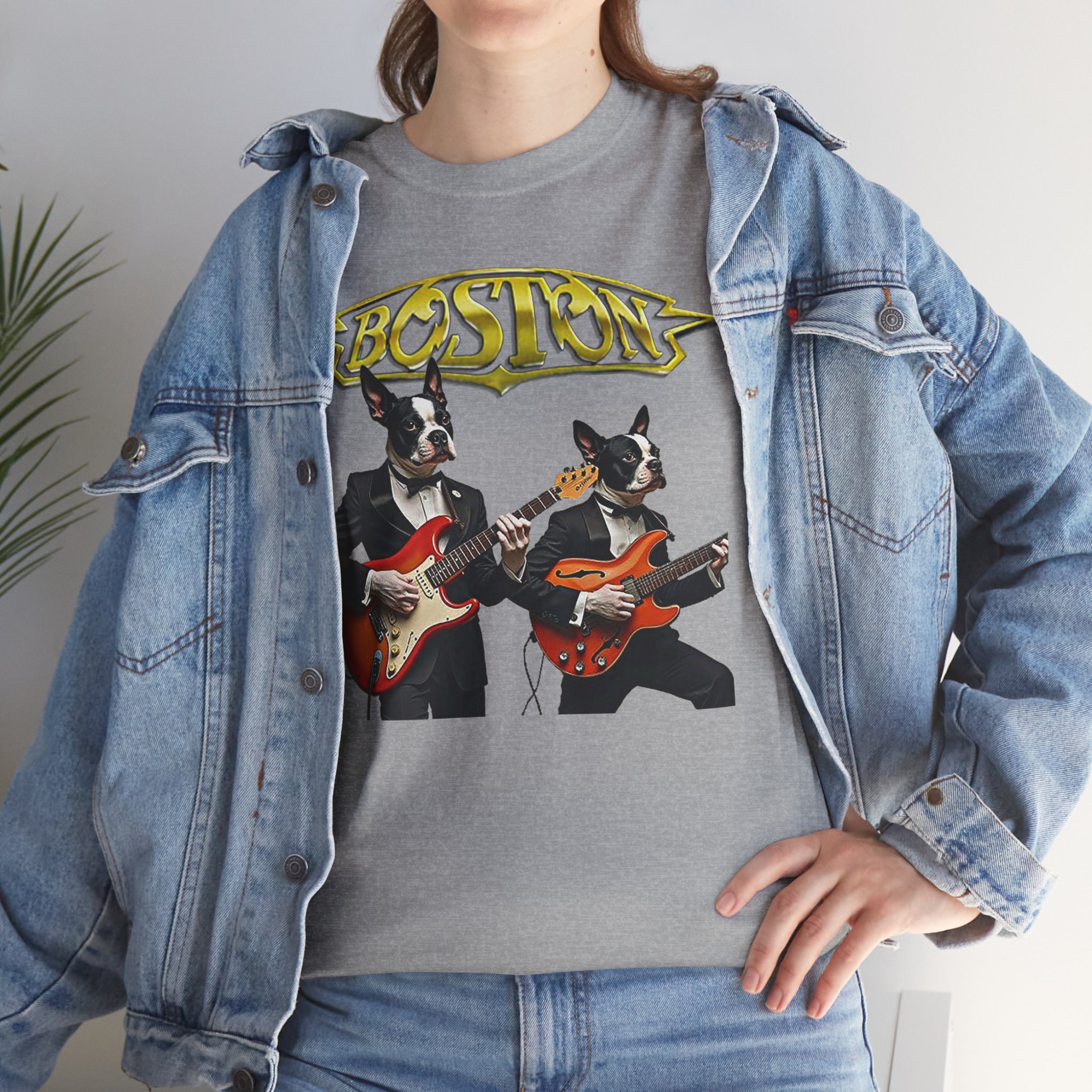 This relaxed, classic-fit tee brings playful vintage rock energy to everyday wear. Two tuxedo-clad Boston terriers stand mid-riff, guitars slung low, captured in crisp, detailed print work that keeps the image bright wash after wash. The medium-weight cotton drapes comfortably — sturdy enough for repeated wear, soft enough for long rehearsals, late-night drives, or lazy weekends. Wear it with faded jeans and a beat-up amp for an effortlessly nostalgic look that speaks to dog-loving music fans and anyone who remembers vinyl sleeves and late-night radio shows.
