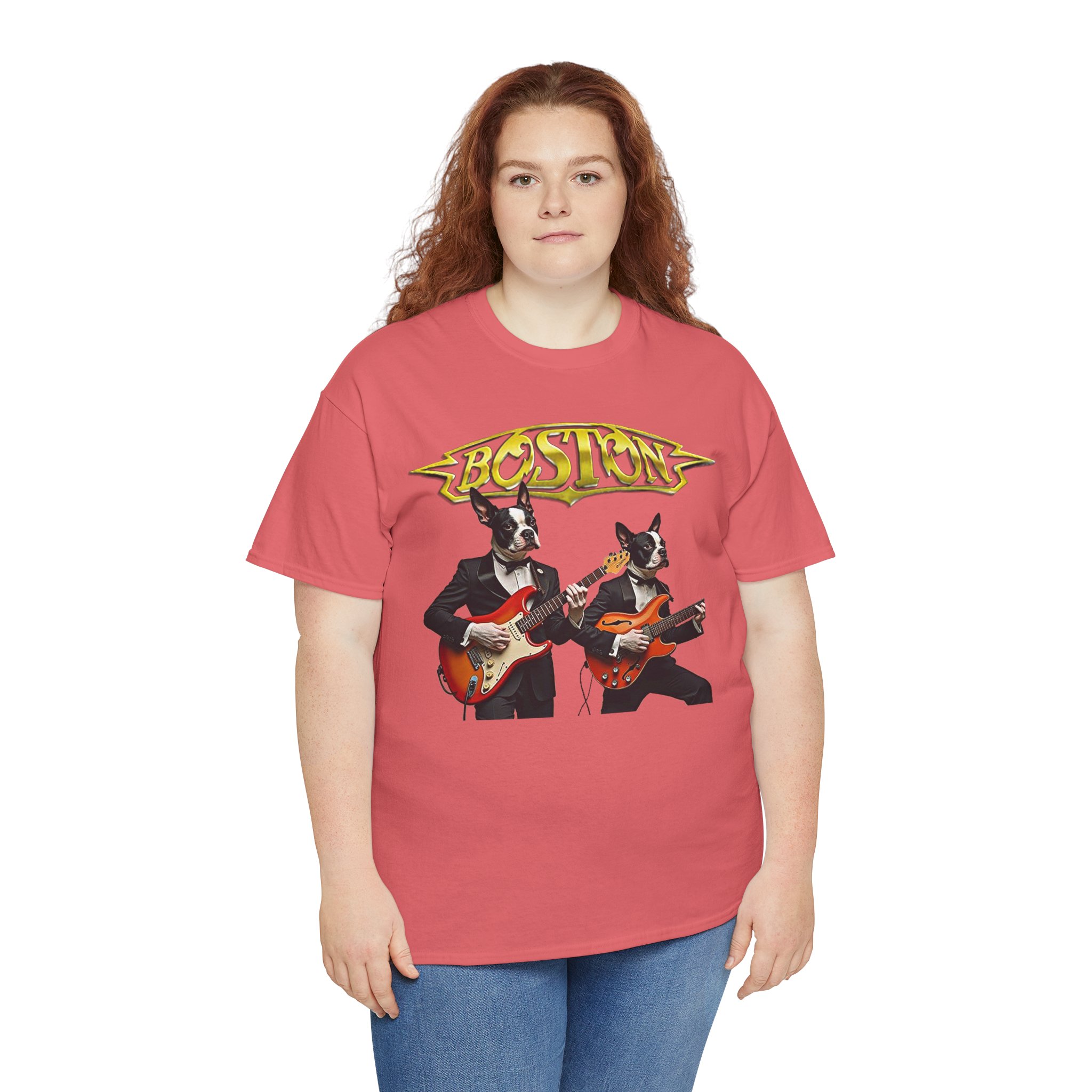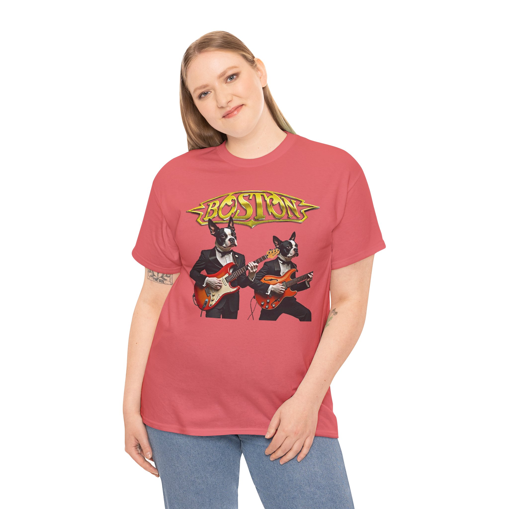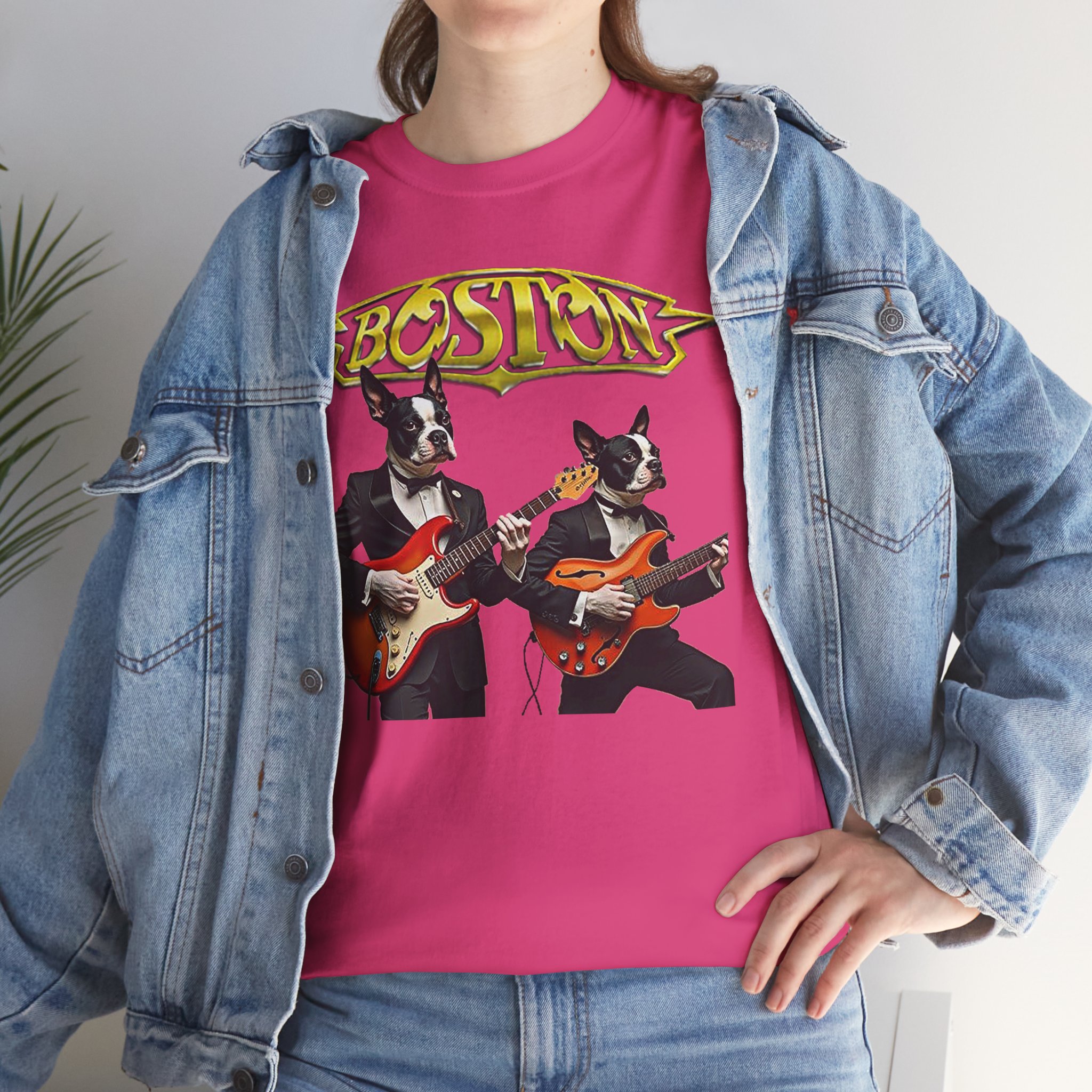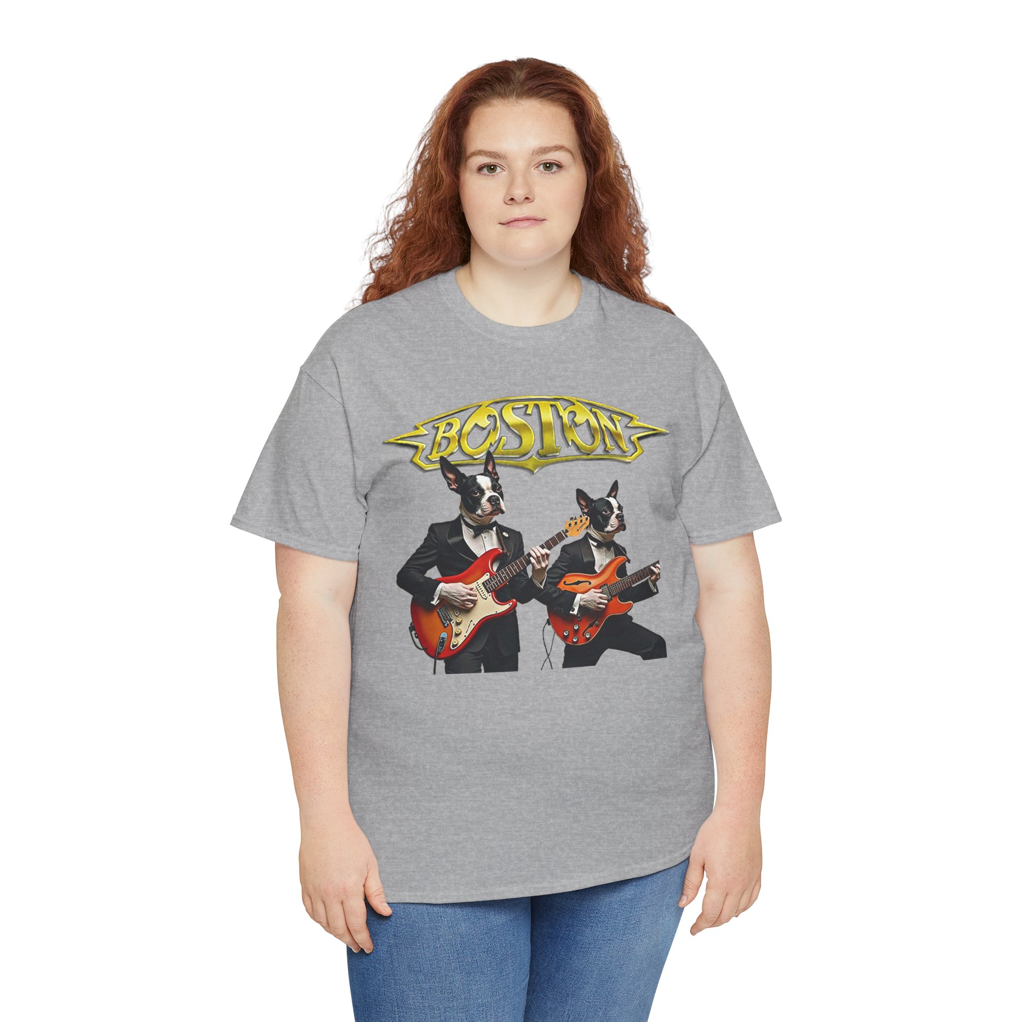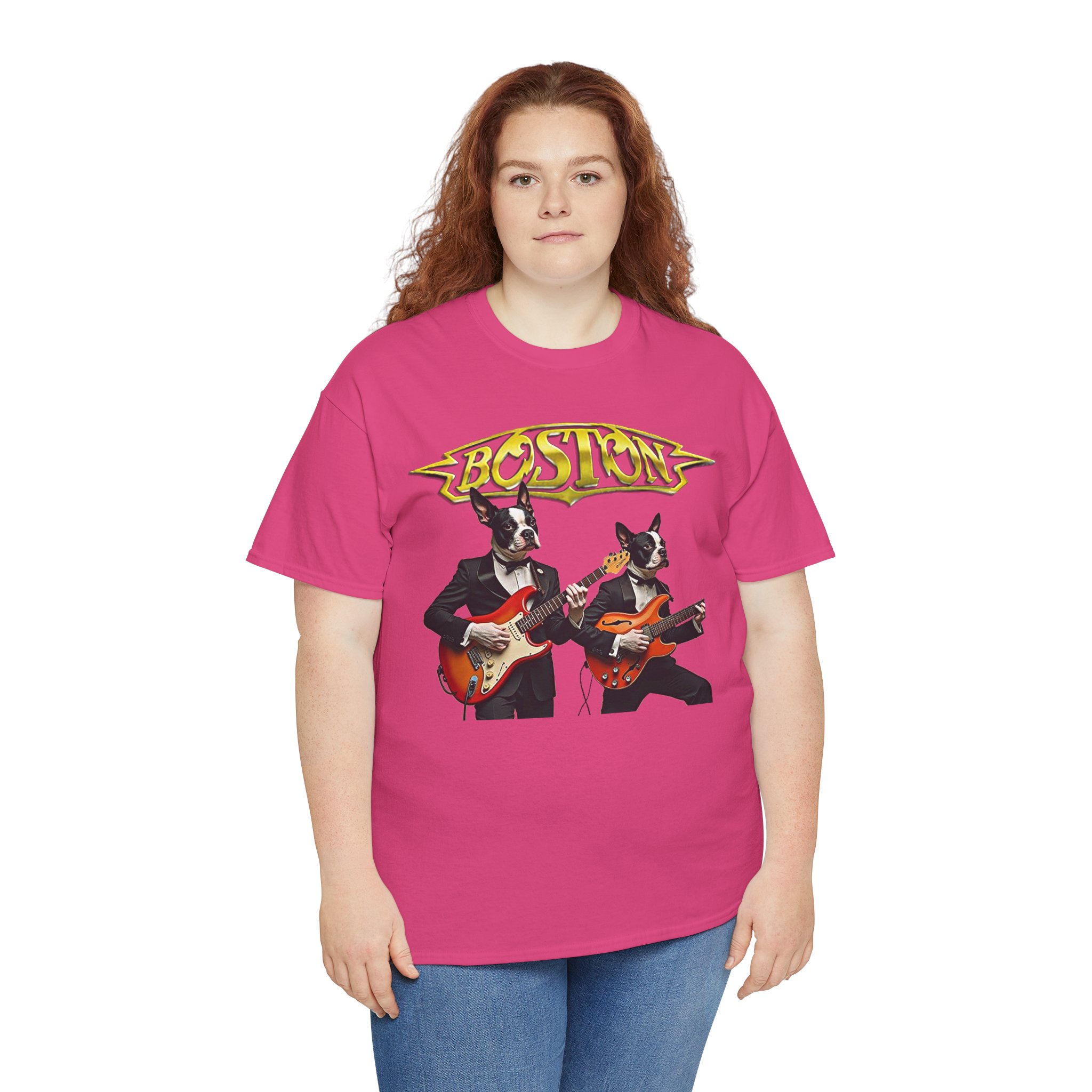 This relaxed, classic-fit tee brings playful vintage rock energy to everyday wear. Two tuxedo-clad Boston terriers stand mid-riff, guitars slung low, captured in crisp, detailed print work that keeps the image bright wash after wash. The medium-weight cotton drapes comfortably — sturdy enough for repeated wear, soft enough for long rehearsals, late-night drives, or lazy weekends. Wear it with faded jeans and a beat-up amp for an effortlessly nostalgic look that speaks to dog-loving music fans and anyone who remembers vinyl sleeves and late-night radio shows.